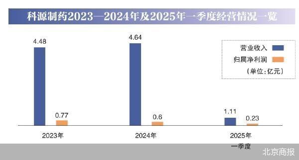 2024年,科源制药归属净利润继续下滑。财务数据显示,报告期内,科源制药实现的营业收入约为4.64亿元,同比增长3.6%;对应实现的归属净利润6044.87万元,同比下降21.54%。